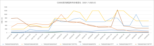 C2000系列发展至今已经迭代了三代,有将近200种型号,从性能上划分也有入门级、中级和高级,这其中有部分料号在去年出现过价格暴涨几十倍甚至接近百倍的情况,也有料号一直徘徊在常态价附近。