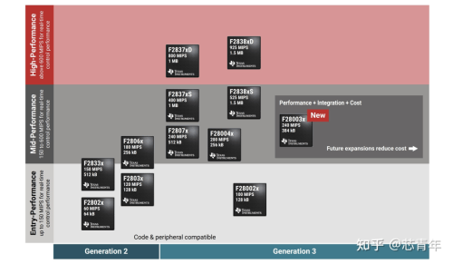 我们收集了过去一年市场上询价比较多的C2000系列的型号,结合TI官方给出的参考设计中推荐的芯片及部分已知用在汽车上的,从中筛选出了8个料号,大致覆盖了C2000系列如下图:
